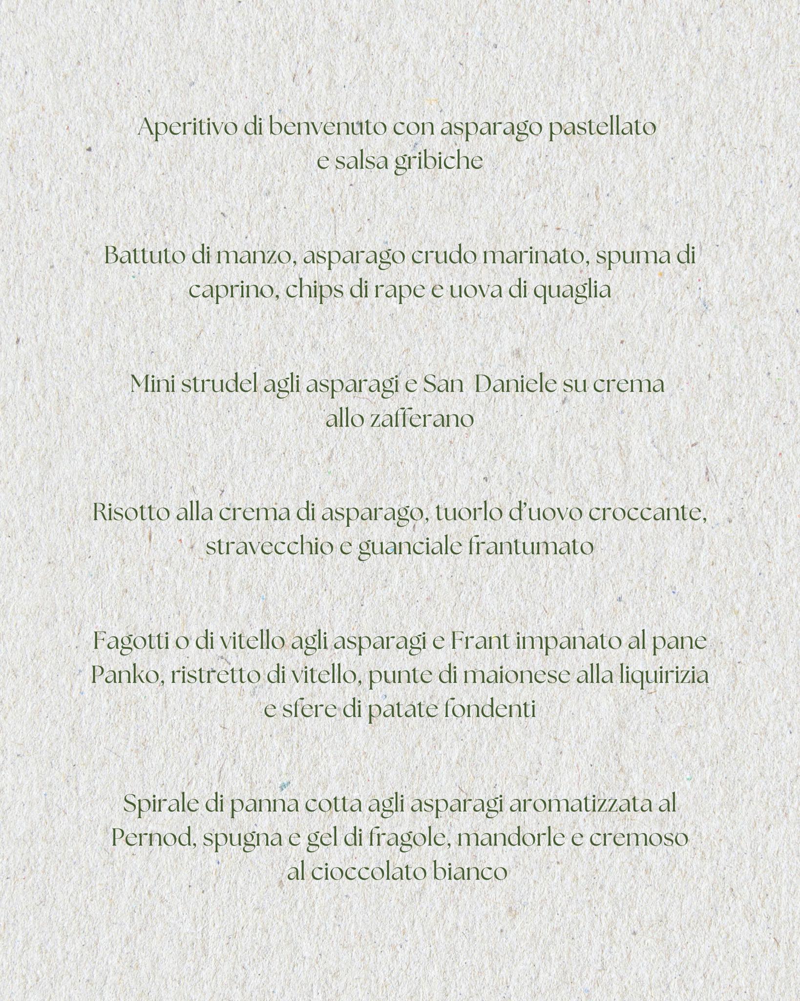 Venerdì 18 aprile la nostra cucina incontra la nostra campagna nella cena dove l'ASPARAGO diventa il protagonista!